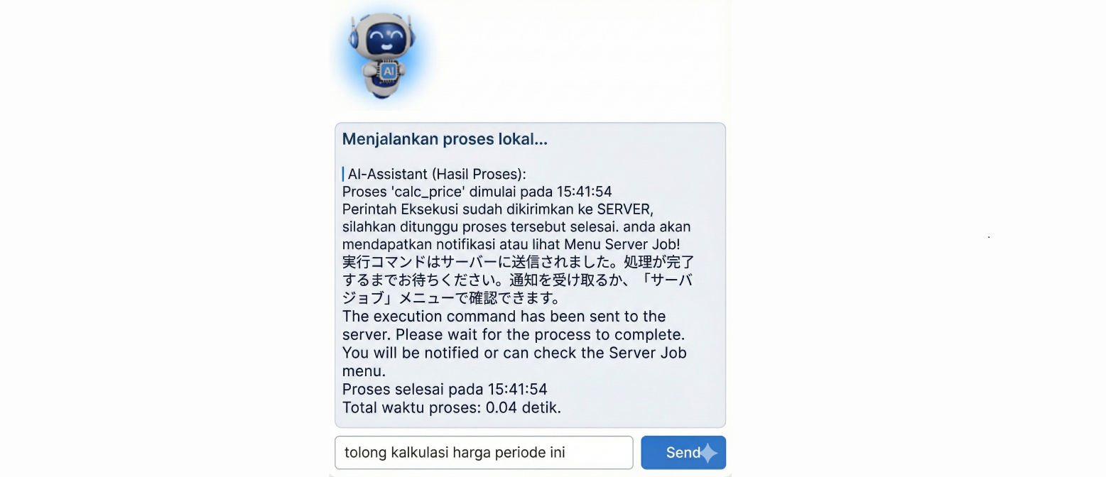 Menjalankan kalkulasi besar 30–60 menit secara background langsung di dalam server (melalui CLI eos_job services). Proses dapat berjalan mandiri tanpa perlu stand-by di komputer. Status eksekusi tampil real-time di aplikasi, sangat ideal untuk Staff Head Office (mis. akunting central) yang terhubung ke Server Pabrik via VPN lintas kota.
